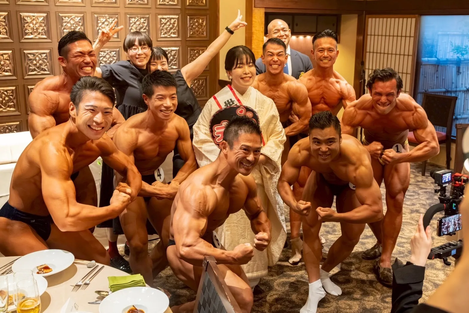 お互いの趣味が筋トレなので、「ローストビーフ入刀」や「ボディビル余興」、ジムのロゴ風にデザインしたのれんなど、筋肉要素をたくさん取り入れました。