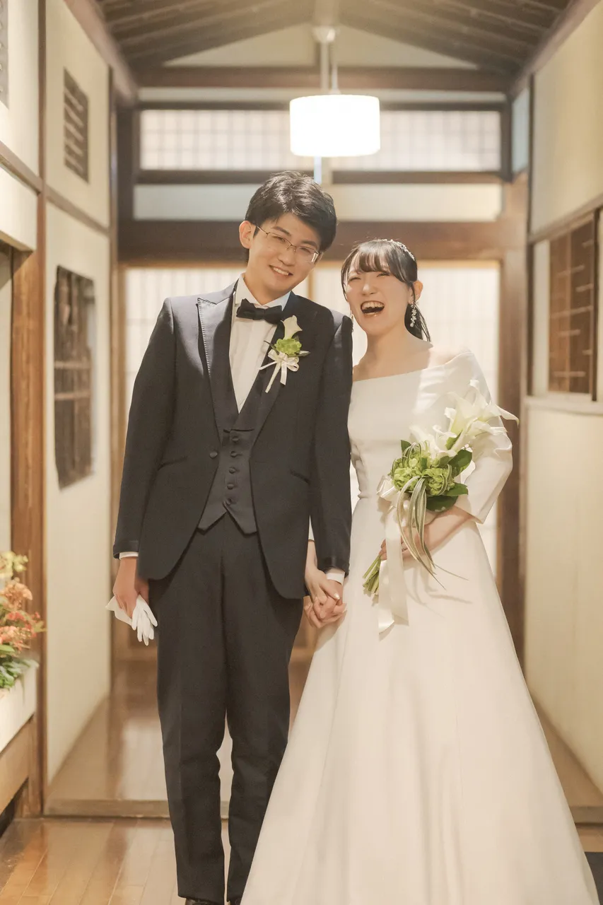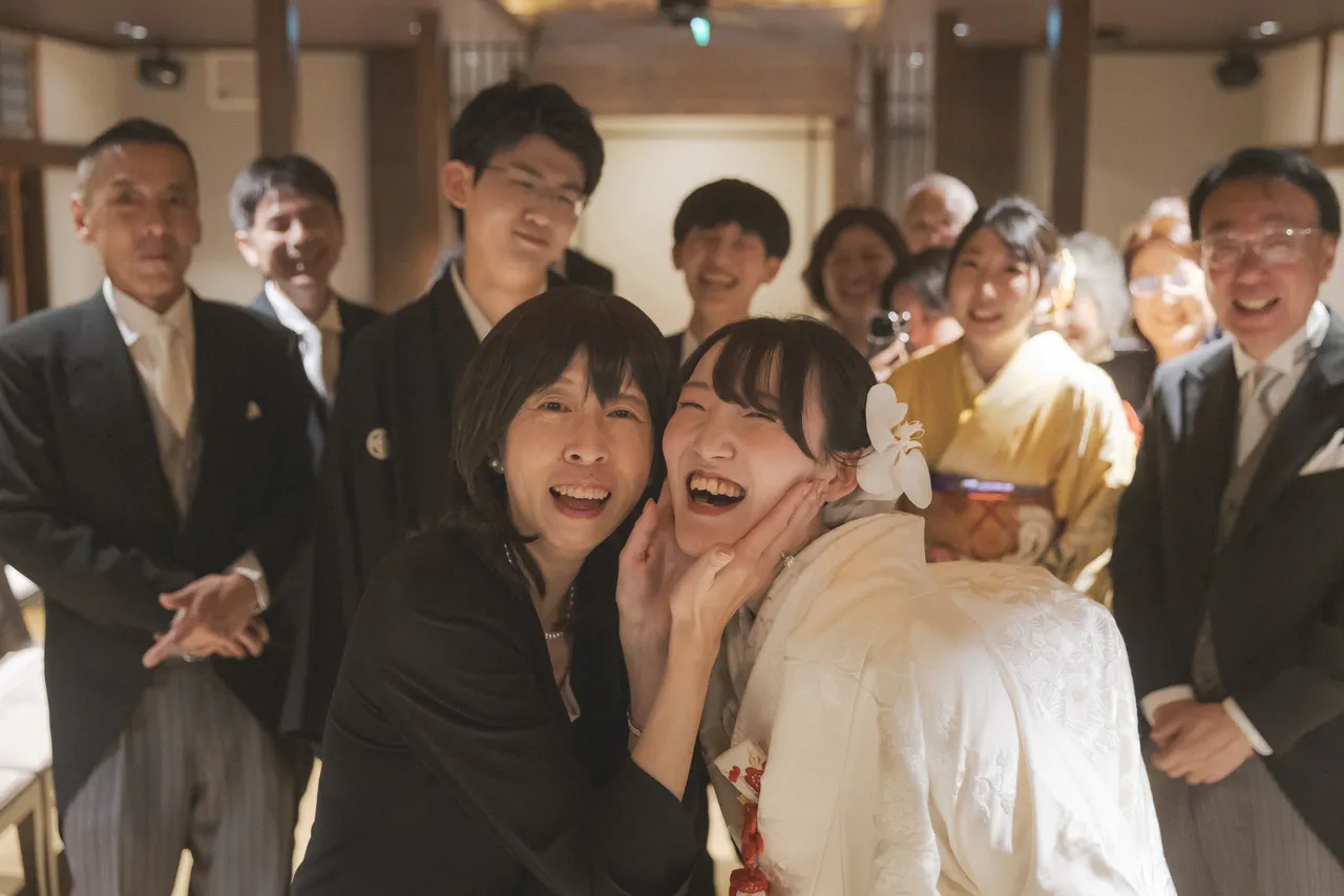 式から1年以上経った今でも毎日写真を見返すほど楽しかったです!テーマにもあるようにずっと笑っている式にしたかったので、終わった後は笑いすぎて顔が痛かった記憶が強いです。ゲストの人数が25人と少なかったため親族卓が比較的近かったのもよく、ガチガチに緊張していた夫に対し、新婦親族から愛のある野次が飛んでいたのも楽しかったです。後日談ですが、私の友人から「夫の叔父が本当に面白い人でまた機会があれば絶対にお話ししたい」と声をかけられることが多く、夫婦2人が大好きな親族と友人がこういった関係を築けた場になったというのもすごく嬉しかったです。